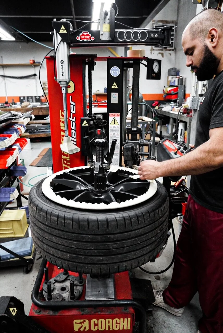 Tire mounting is the process of putting your new tires on your new wheels, which requires the use of specialized equipment.